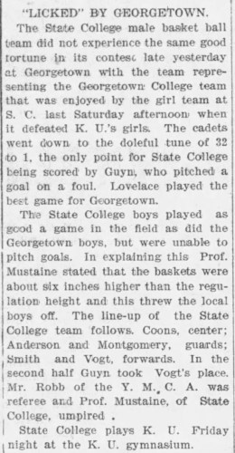 Vogt graduated from the University of Kentucky on June 3, 1903, with a bachelor’s of mechanical engineering. He was captain of the football team and a member of Kentucky’s first basketball team during his senior year. On February 18, 1903, he played against the Lexington YMCA in Kentucky’s second basketball game ever. He also ran track and held records at Kentucky in the 880-yard run, the mile, and the mile relay. Vogt was a member of the Kappa Sigma social fraternity.