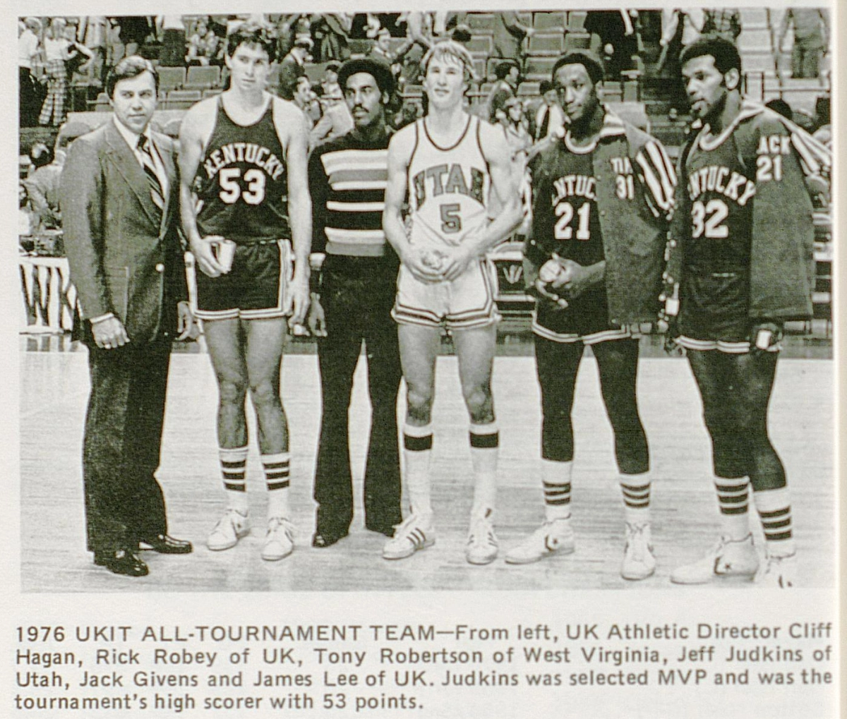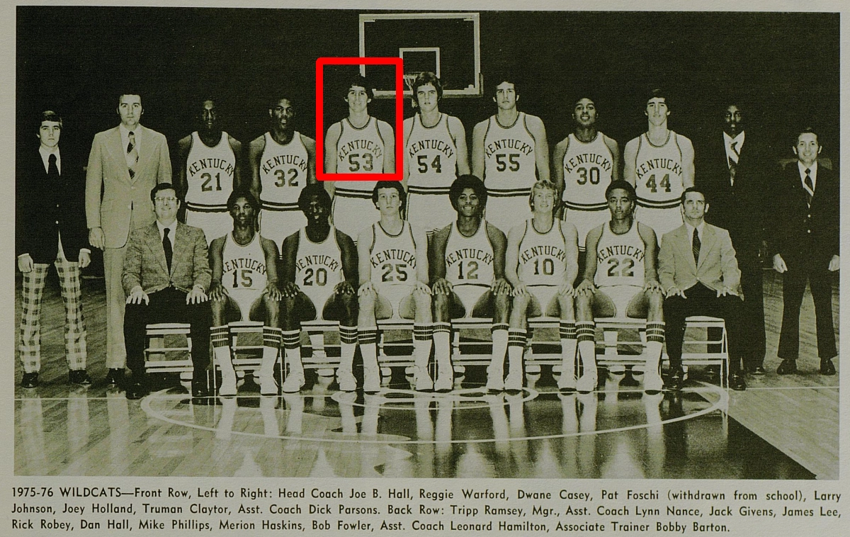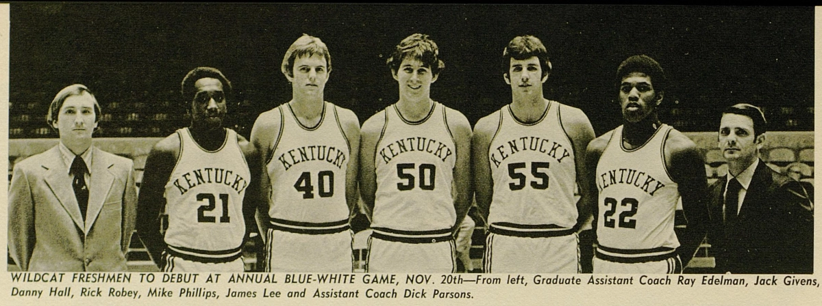 In April 1974 Robey chose UK, accepting a scholarship offered by Coach Joe B. Hall. Hall also recruited Jack Givens, James Lee, and Mike Phillips to the 1974 UK lineup. Robey and Phillips were often referred to as “the Twin Towers” while playing together at UK. Robey said his decision was influenced by Kentucky’s love of basketball. “I felt the coaches here were really good people and of course the fans are tremendous”.