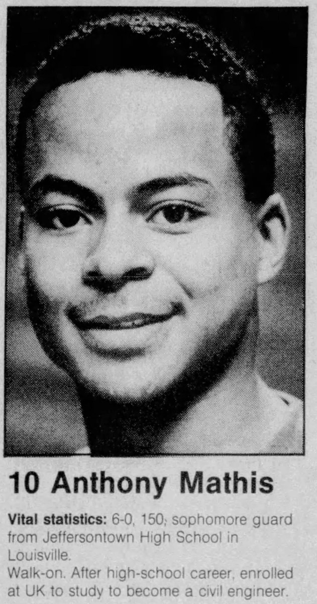 “My biggest contribution will be in attitude,’ said Mathis, ‘‘And I’m also out there to put pressure on Sean Sutton and Richie Farmer.” Only six feet tall, he said he made the team because of his quickness and defensive skills. “My height makes it tougher to play at this level,’’ Mathis said, “but I think my quickness makes up for it. I’m basically a hustling defensive player.”